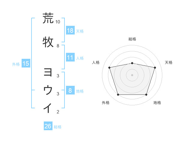荒牧 ヨウイさんを姓名の画数から五運を鑑定
