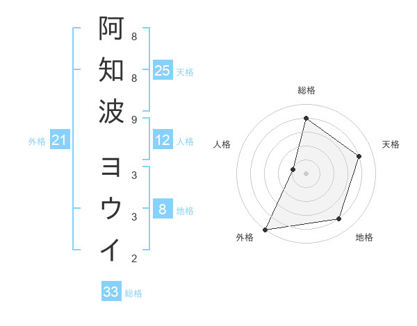 阿知波 ヨウイさんを姓名の画数から五運を鑑定