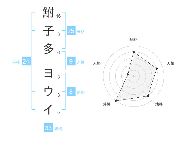 鮒子多 ヨウイさんを姓名の画数から五運を鑑定