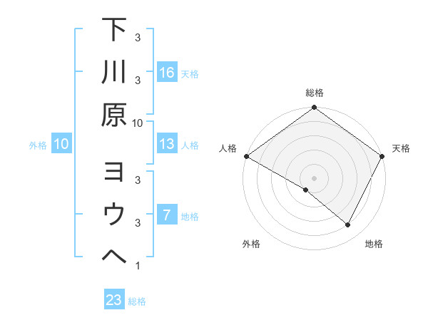 下川原 ヨウヘさんの総格は23画の5点!
