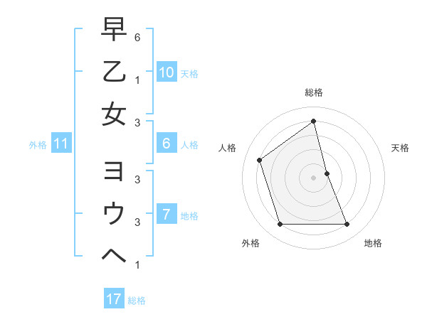 早乙女 ヨウヘさんを姓名の画数から五運を鑑定
