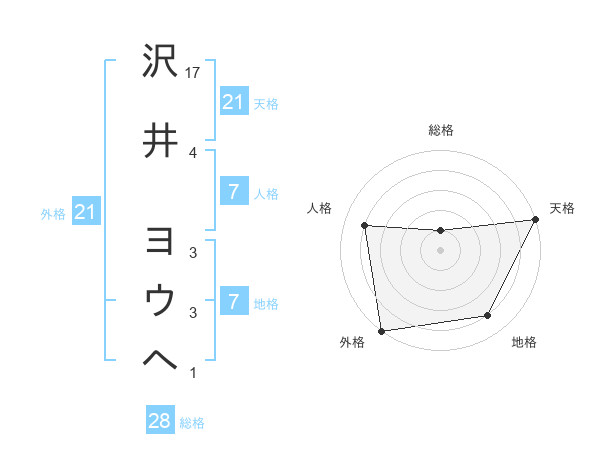 沢井 ヨウヘさんを姓名の画数から五運を鑑定