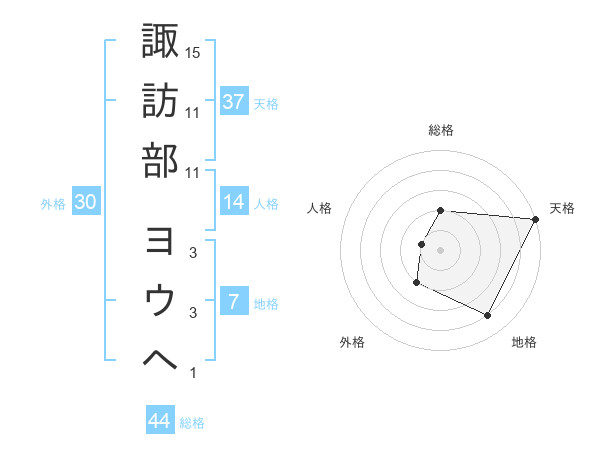 諏訪部 ヨウヘさんの天格は37画の5点!