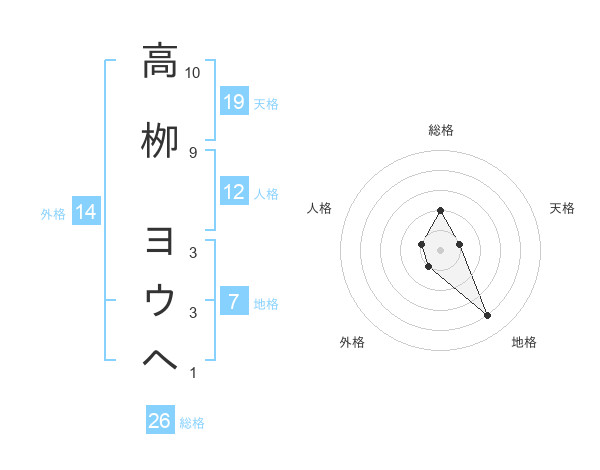 高栁 ヨウヘさんの総格は26画の2点!