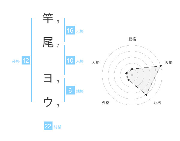 竿尾 ヨウさんを姓名の画数から五運を鑑定