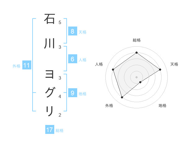 石川 ヨグリさんを姓名の画数から五運を鑑定