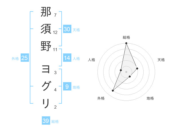 那須野 ヨグリさんを姓名の画数から五運を鑑定