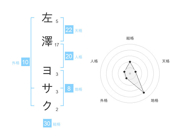 左澤 ヨサクさんを姓名の画数から五運を鑑定