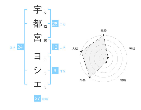 宇都宮 ヨシエさんを姓名の画数から五運を鑑定