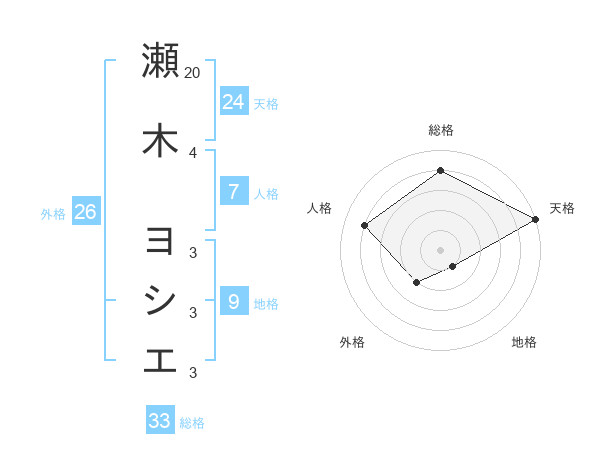 瀬木 ヨシエさんを姓名の画数から五運を鑑定
