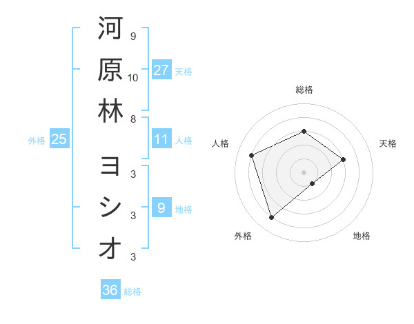 河原林 ヨシオさんの天格は27画の3点!