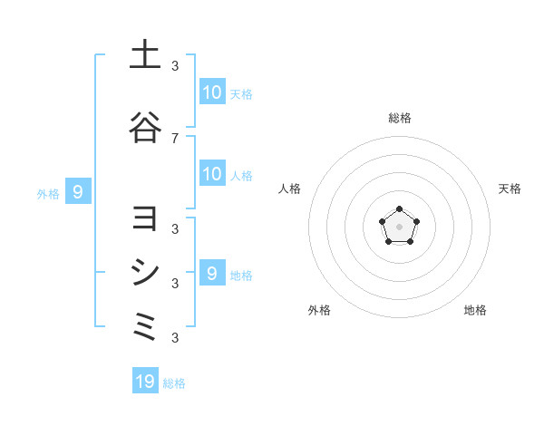 土谷 ヨシミさんの総格は19画の1点!