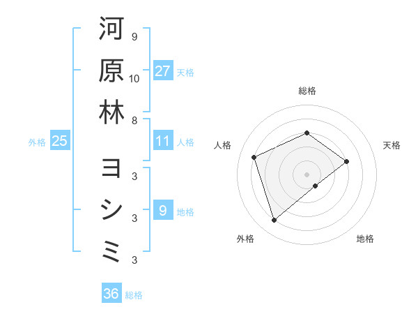 河原林 ヨシミさんの天格は27画の3点!