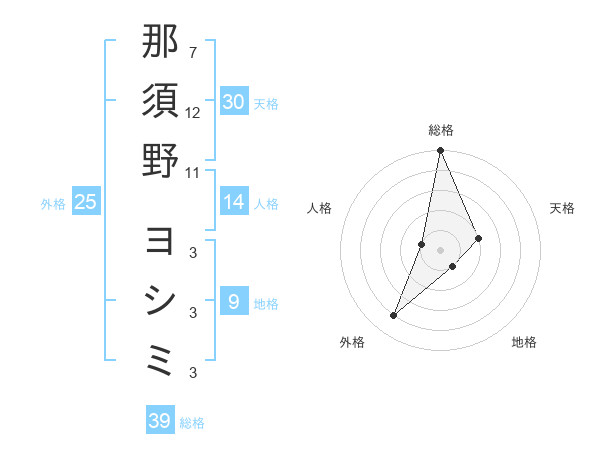 那須野 ヨシミさんを姓名の画数から五運を鑑定