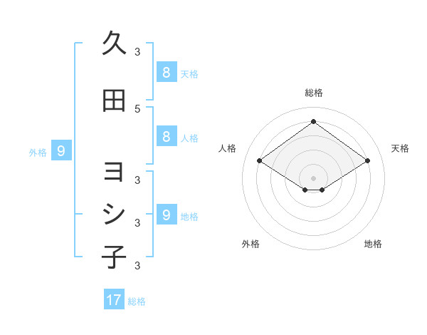 久田 ヨシ子さんの総格は17画の4点!
