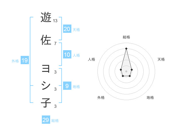 遊佐 ヨシ子さんを姓名の画数から五運を鑑定