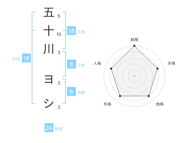五十川 ヨシさんを姓名の画数から五運を鑑定