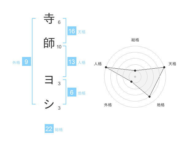 寺師 ヨシさんの天格は16画の5点!