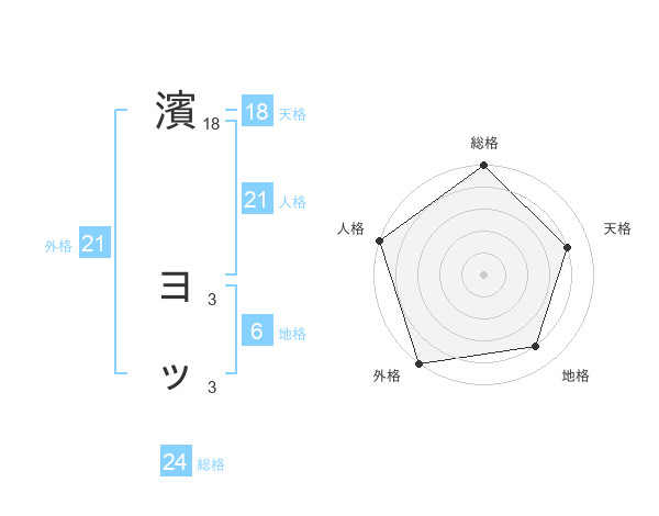 濱 ヨッさんの外格は21画の5点!