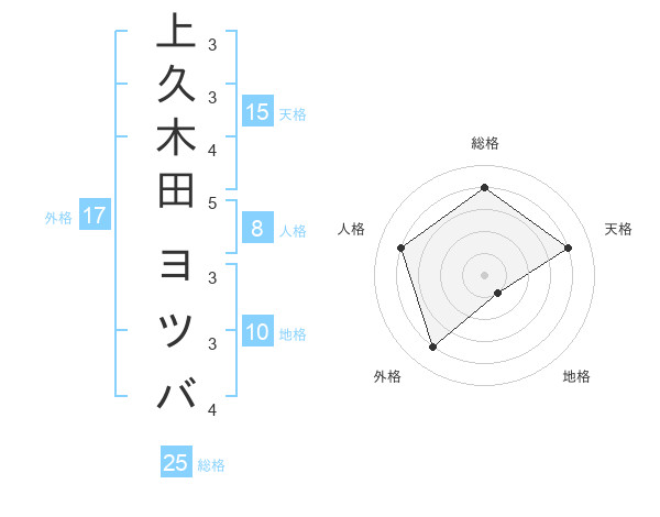 上久木田 ヨツバさんを姓名の画数から五運を鑑定