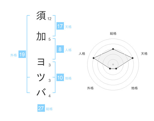 須加 ヨツバさんの天格は17画の4点