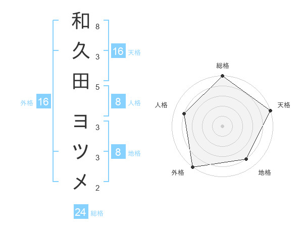 和久田 ヨツメさんの外格は16画の5点!
