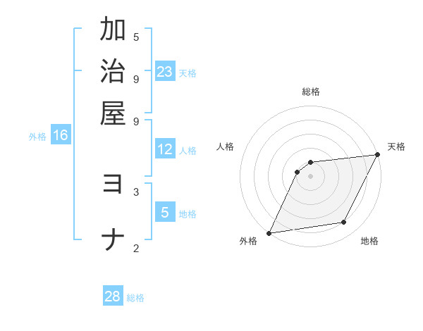 加治屋 ヨナさんを姓名の画数から五運を鑑定
