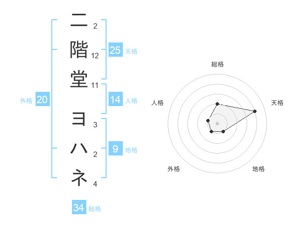 二階堂 ヨハネさんを姓名の画数から五運を鑑定