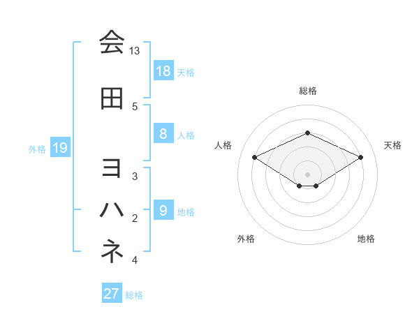 会田 ヨハネさんを姓名の画数から五運を鑑定