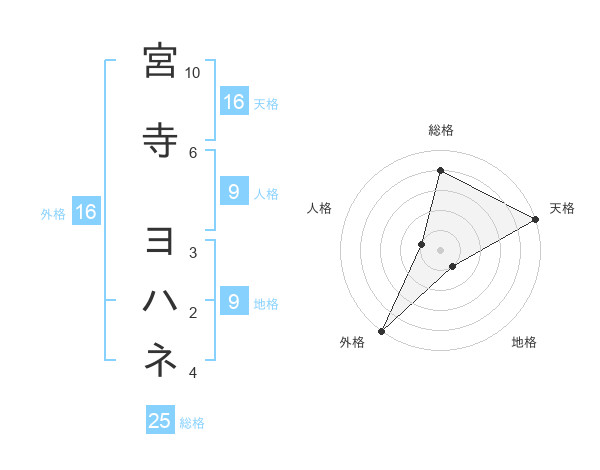 宮寺 ヨハネさんを姓名の画数から五運を鑑定