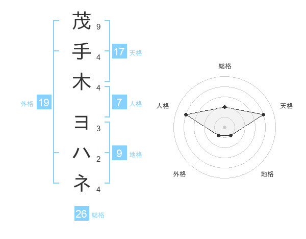 茂手木 ヨハネさんを姓名の画数から五運を鑑定