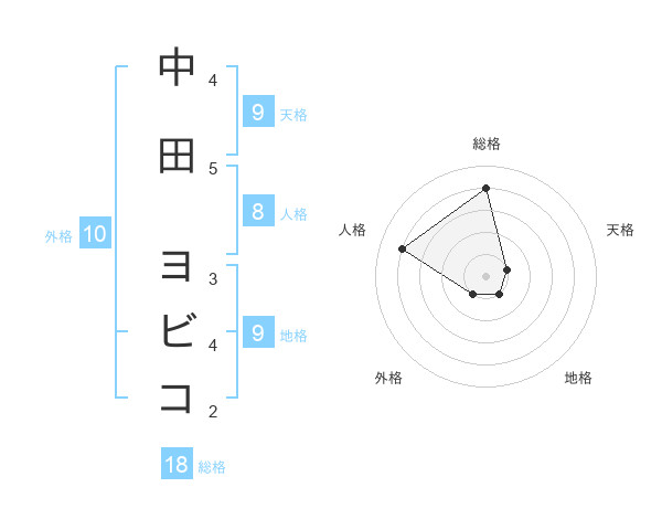 中田 ヨビコさんを姓名の画数から五運を鑑定