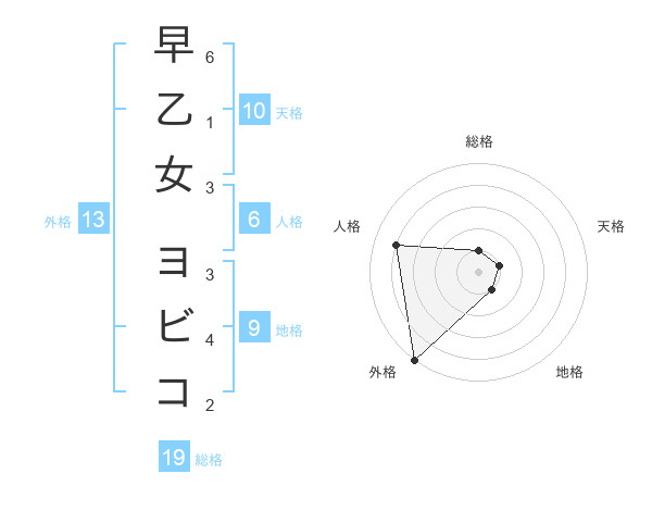 早乙女 ヨビコさんを姓名の画数から五運を鑑定