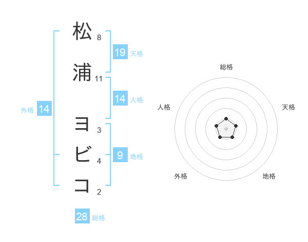 松浦 ヨビコさんを姓名の画数から五運を鑑定