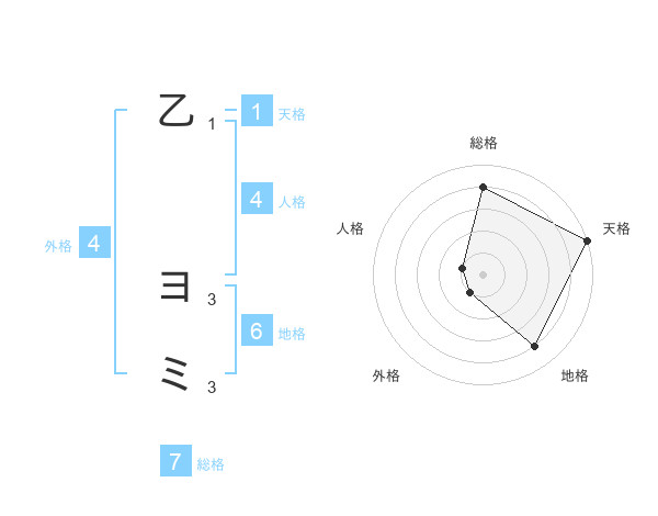 乙 ヨミさんの総格は7画の4点!