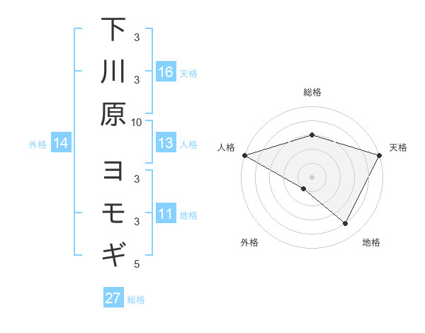 下川原 ヨモギさんを姓名の画数から五運を鑑定