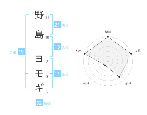 野島 ヨモギさんを姓名の画数から五運を鑑定
