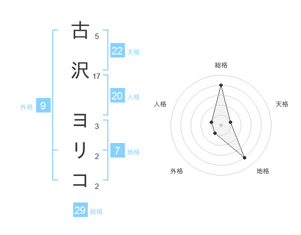 古沢 ヨリコさんを姓名の画数から五運を鑑定