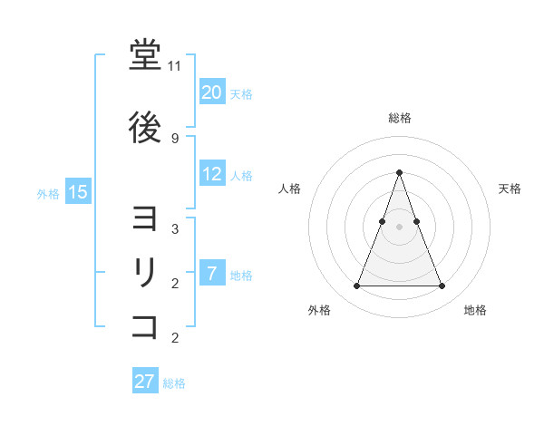堂後 ヨリコさんの総格は27画の3点!