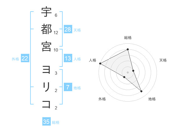 宇都宮 ヨリコさんを姓名の画数から五運を鑑定