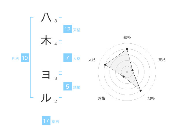 八木 ヨルさんを姓名の画数から五運を鑑定
