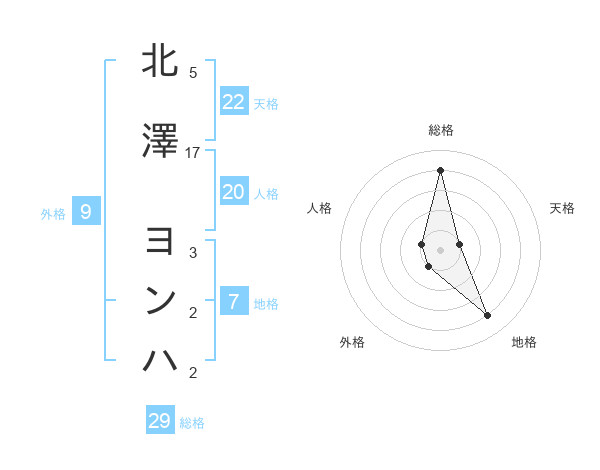北澤 ヨンハさんの総格は29画の4点!