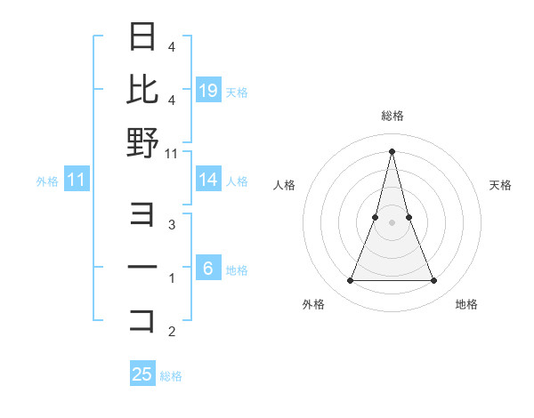 日比野 ヨーコさんを姓名の画数から五運を鑑定