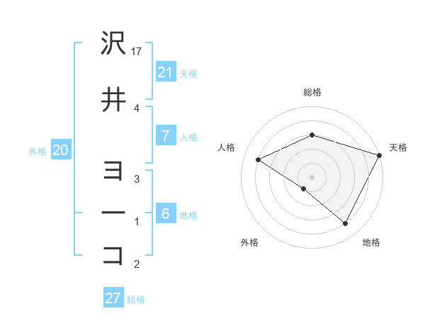 沢井 ヨーコさんを姓名の画数から五運を鑑定