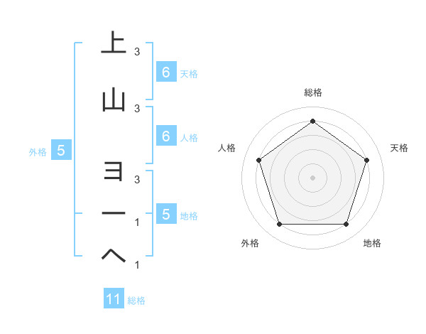 上山 ヨーヘさんを姓名の画数から五運を鑑定