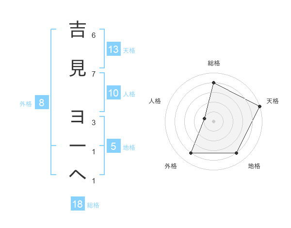 吉見 ヨーヘさんを姓名の画数から五運を鑑定