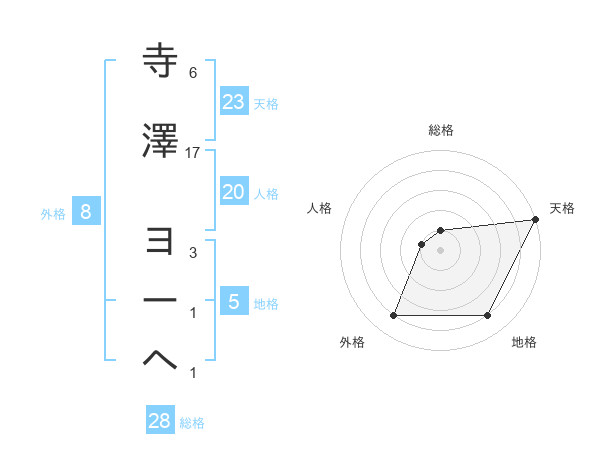 寺澤 ヨーヘさんを姓名の画数から五運を鑑定