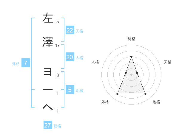 左澤 ヨーヘさんを姓名の画数から五運を鑑定