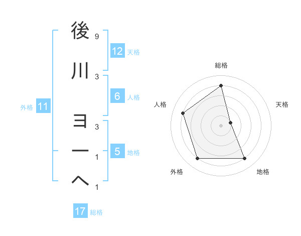 後川 ヨーヘさんを姓名の画数から五運を鑑定