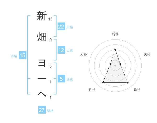 新畑 ヨーヘさんを姓名の画数から五運を鑑定